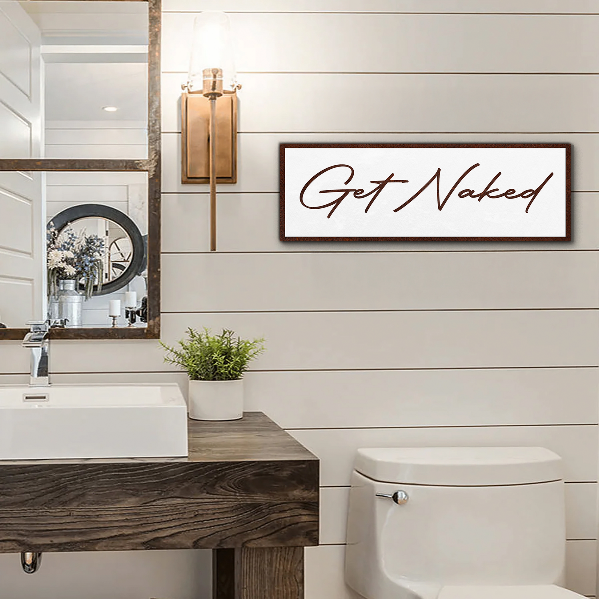 Whether you’re revamping your bathroom or looking for the perfect housewarming, wedding, or anniversary gift, this humorous and elegant wall art is an excellent choice. Designed to blend humor and style, the "Get Naked" canvas sign is more than just decor—it’s a fun and functional piece that will make your bathroom unforgettable.