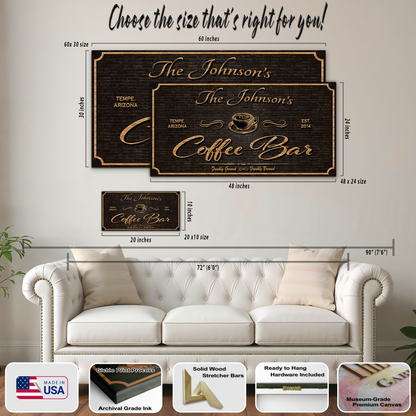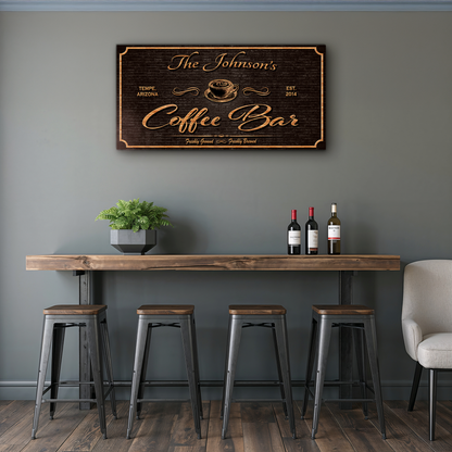 Beautifully Designed and Personalized Home Coffee Bar Canvas Sign.